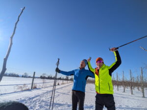 XC ski in the orchard on Sunday starting at 1 pm, with outdoor fire pit, spiked hot chocolate and hot toddies in the distillery and…